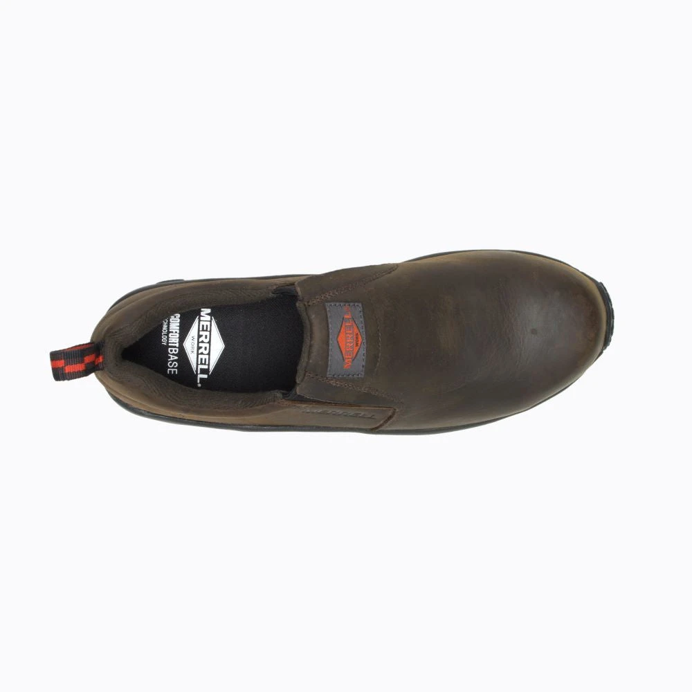 This leather Jungle Moc transitions easily from construction site to shop floor to office. This lightweight composite toe slip-on keeps you safe and comfortable on the jobsite and the full-grain leather cleans up nicely for the office.